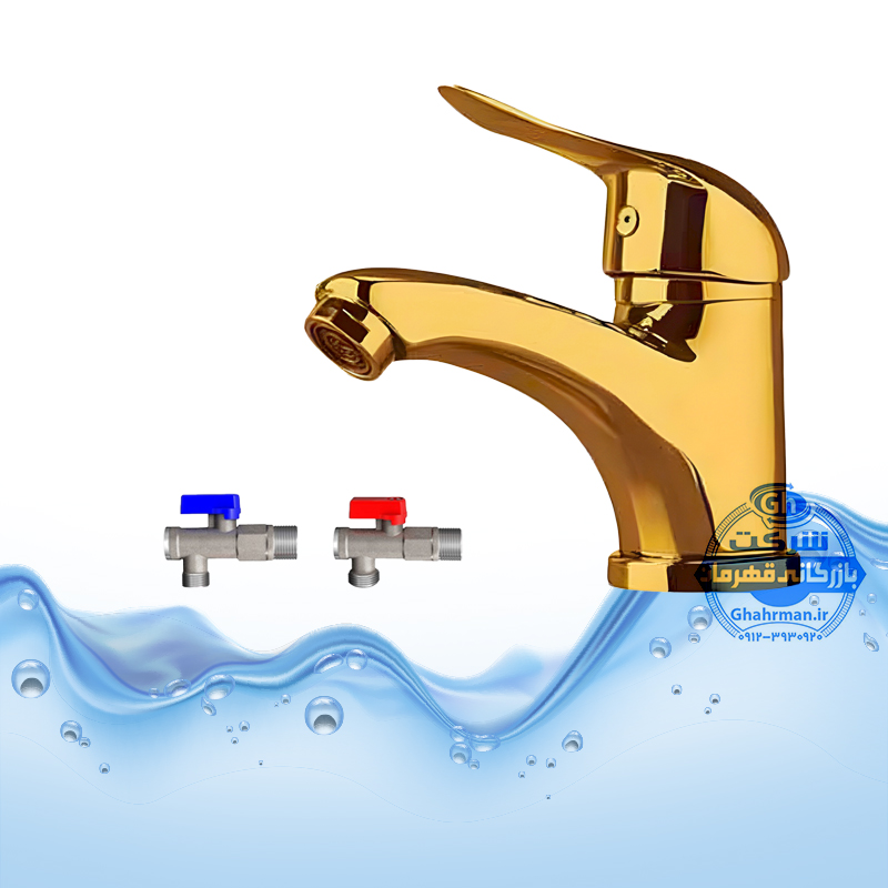 ست ۳ عددی شیر روشویی طلایی براق مدل دنیز به همراه شیر پیسوار | شیرآلات برند آیدا صنعت