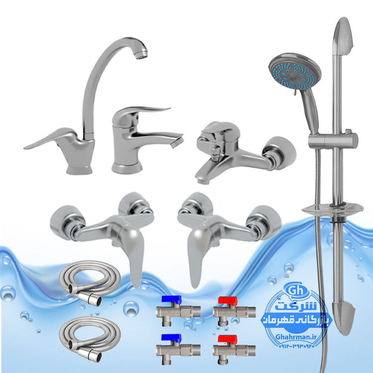 ست ۱۲ عددی شیرآلات برند آیدا صنعت مدل قهرمان اردکی | شیر ظرفشویی + شیر روشویی + شیر حمام + شیر توالت + علم دوش یونیکا کروم + دو عدد شلنگ توالت + دو عدد شلنگ استیل + چهار عدد شیر پیسوار | کروم مات