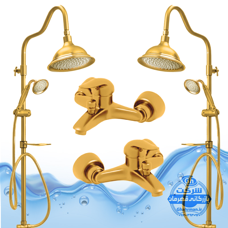ست ۴ عددی دوش حمام با علم یونیورست شیپوری شیرآلات برند آیدا صنعت مدل دنیز | طلایی مات
