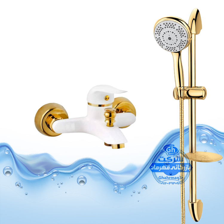 ست ۲ عددی شیر حمام و علم دوش یونیورست مدل یونیکا | سفید طلایی | شیرآلات برند آیدا صنعت مدل دنیز